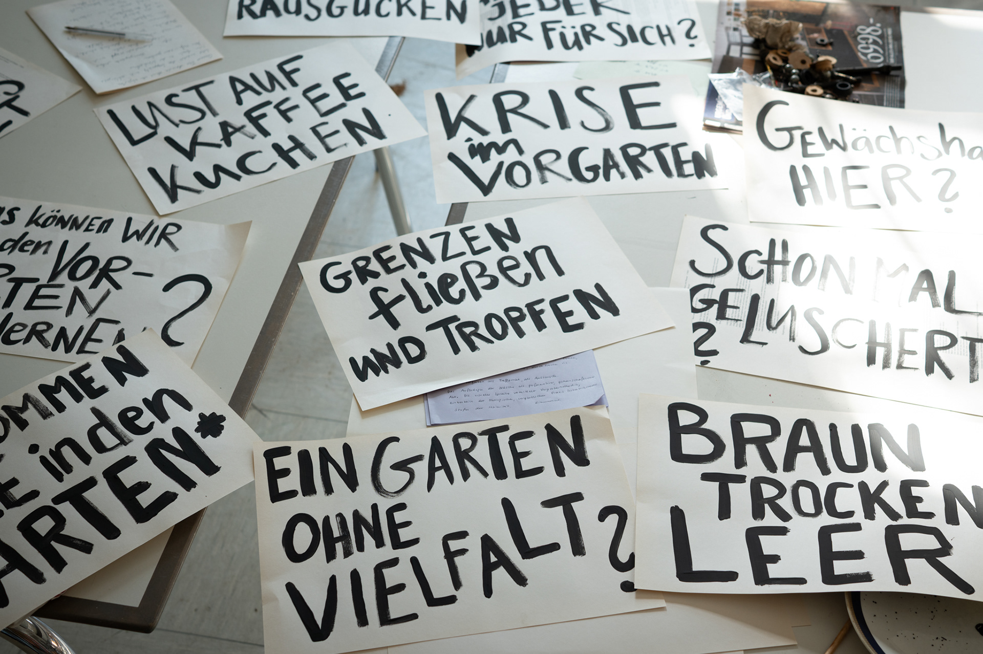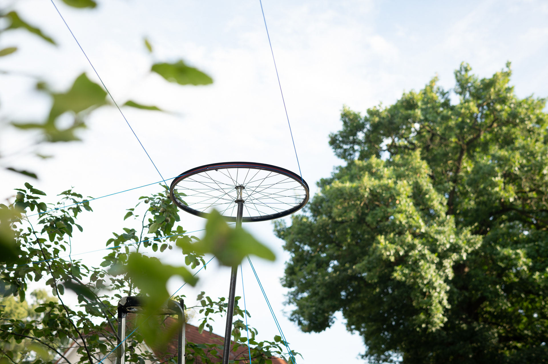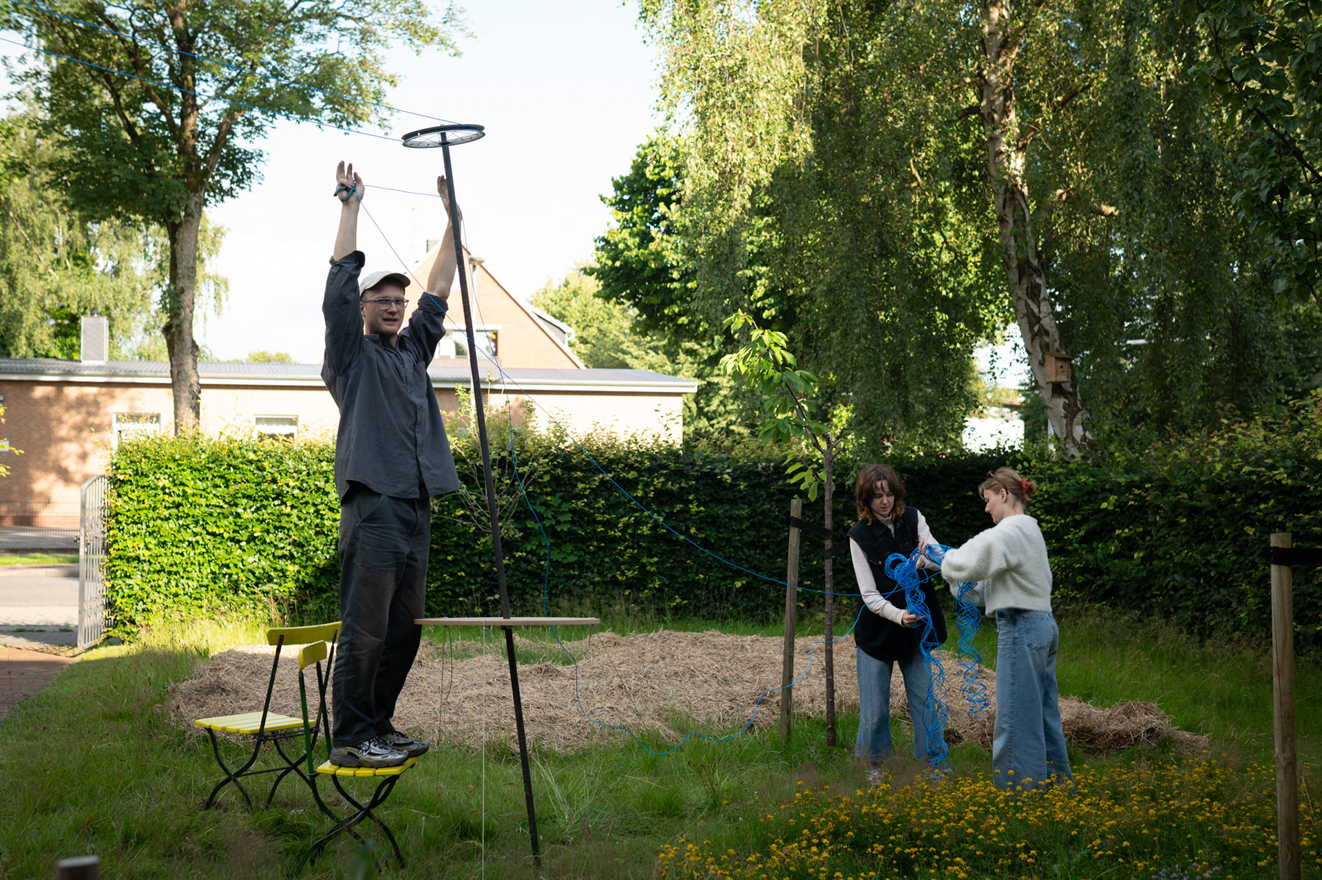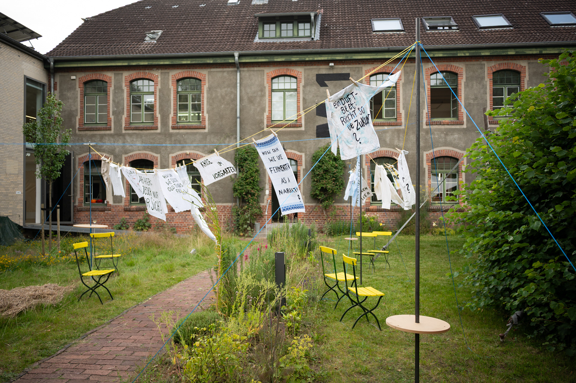 Eine Intervention im Garten der M1 Arthur Boskamp-Stiftung im Juli 2025. Ergebnis des Seminars Parteiisches Design unter Leitung von Prof.in Frauke Gerstenberg und Leon Bischinger
